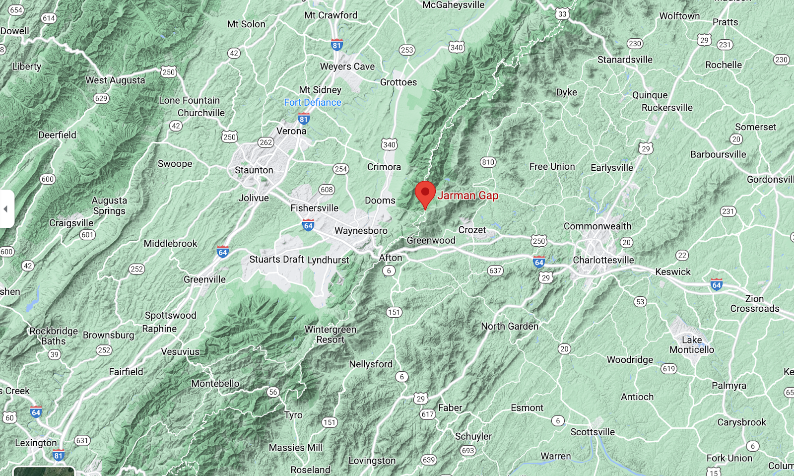 I have been trying to put the McNeely group living just east of the Beverley Manor or Borden Tract. But using the water ways mentioned in the deeds it is more likely that they came through the gap in the Blue Ridge Mountains later called Woods/Jarman Gapthat I-64 to settle just to the East of what is now Crozet. In below map red marker just east of Crozet is Mechums River while green marker just above it is Beaver Creek.